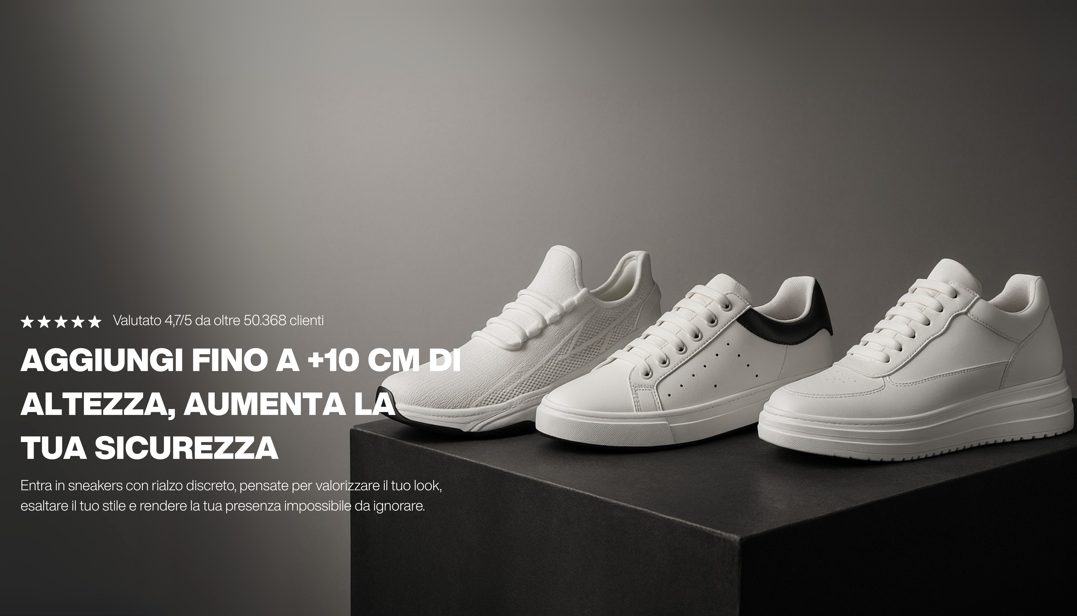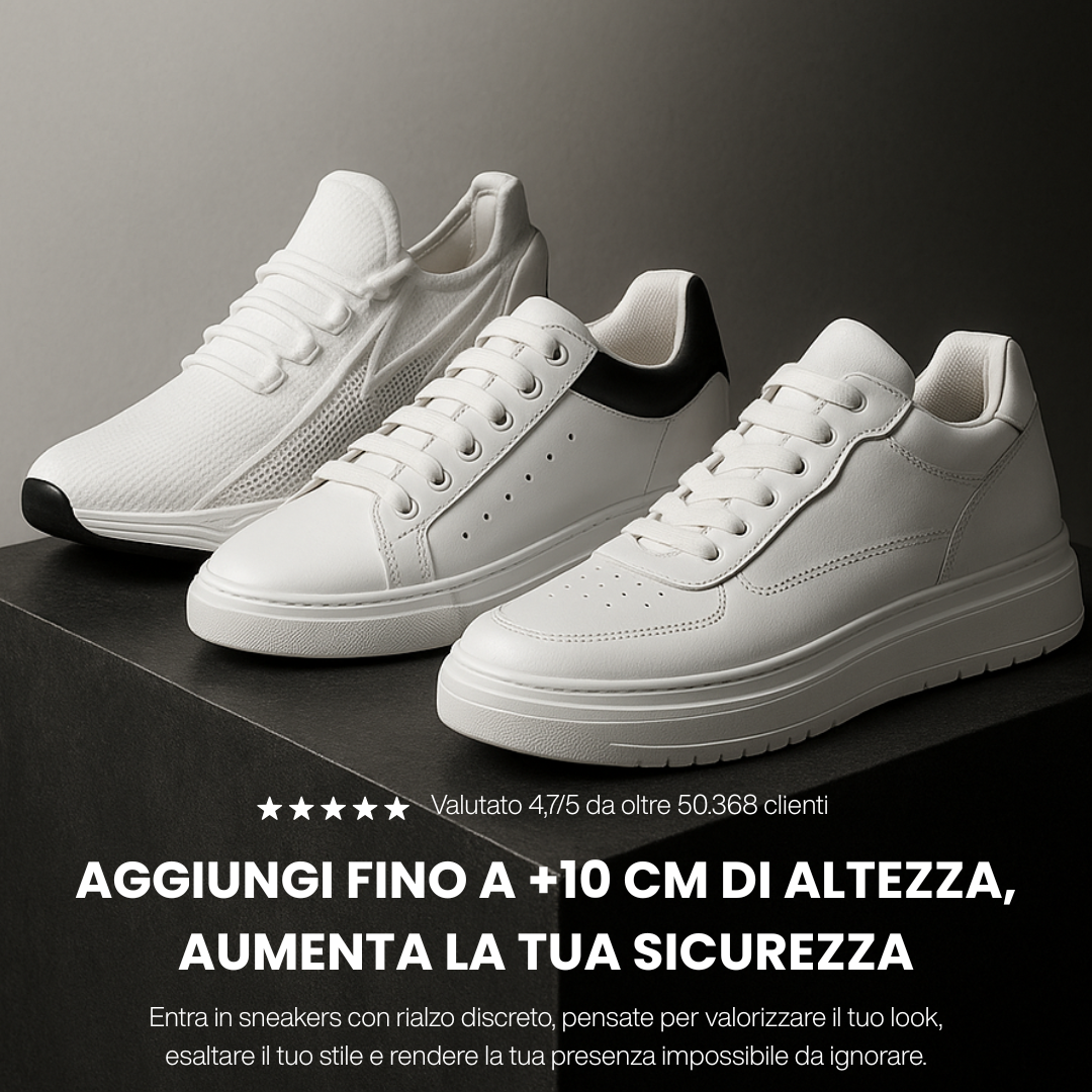 Progettate per essere indossate tutto il giorno, le nostre sneaker uniscono comfort premium e rialzi invisibili. Sembrerai più alto e ti sentirai imbattibile — senza rinunciare a stile o praticità.